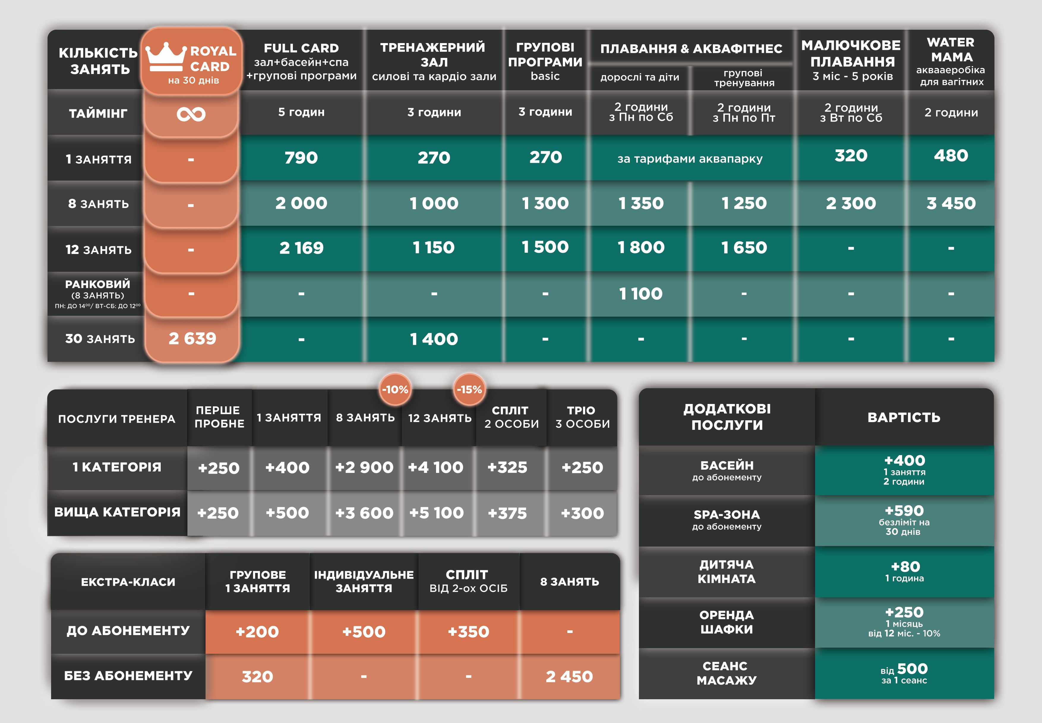6. Продаж додаткових послуг - Разове заняття в басейні, Абонемент в СПА, Full Body та Персональні тренування здійснюються лише при наявності абонемента Фітнес-Центру